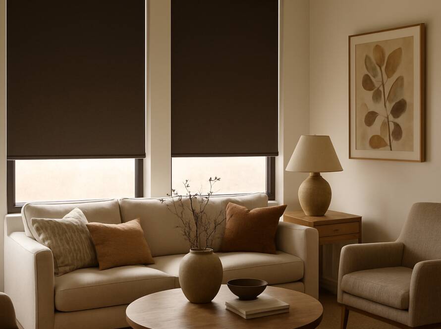 Utilisez des stores enrouleurs pour les fenêtres de votre salon pour un look chic et moderne. Pour une chambre à coucher, optez pour des tissus plus doux et des couleurs apaisantes qui favorisent le sommeil.